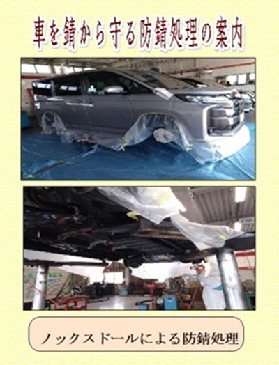 - ノックスドール、を施すことを強くお勧めします。特に新車や中古車を購入されたばかりの方は、サビが本格化する前に実施すると効果的です。