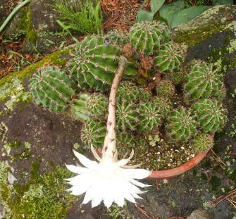 サボテンの花 2021/07/13 我が家には2鉢のサボテンがあります。昨年も咲きました。今年は昨年と違った鉢に白い大きな花が咲きました。花を見つける2時間くらい前は何ら変化有りませんでしたが、気づくと咲いていたではありませんか。 一瞬に咲いたような感覚でした。